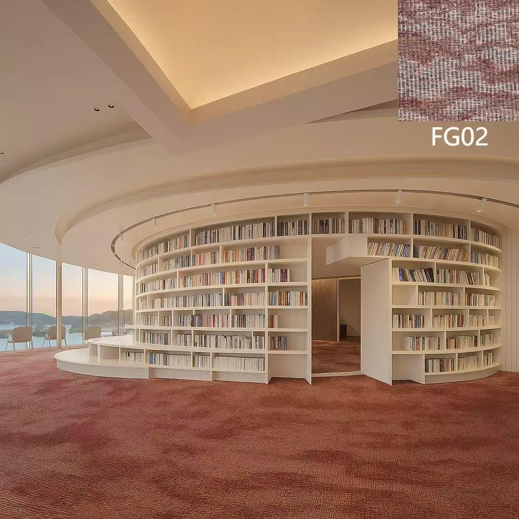 The hotel series fabric features a dual-color jacquard design with patterns reminiscent of Chinese ink landscapes, depicting flowing mountains and rivers. This collection exudes grandeur and a classical artistic vibe, enhancing the hotel’s exquisite elegance while showcasing the unique charm of hotel space.